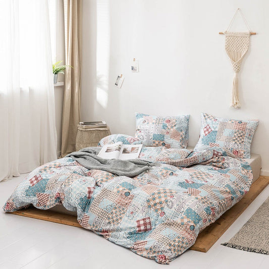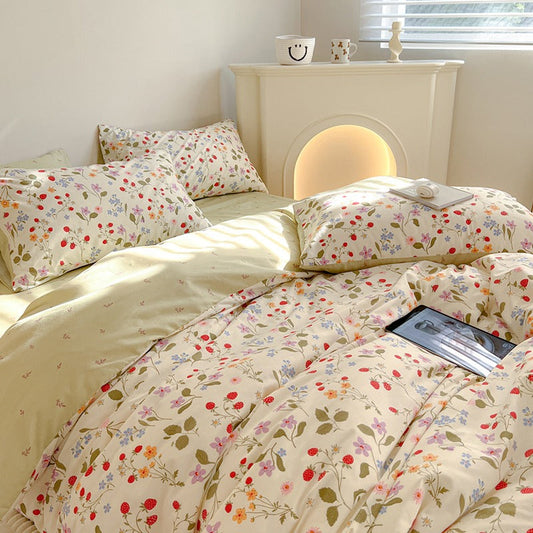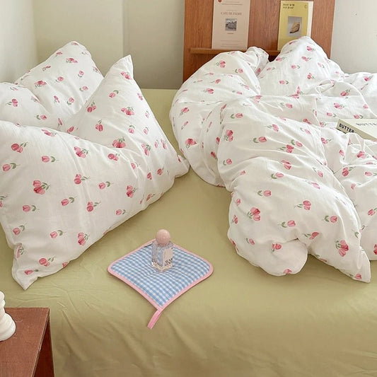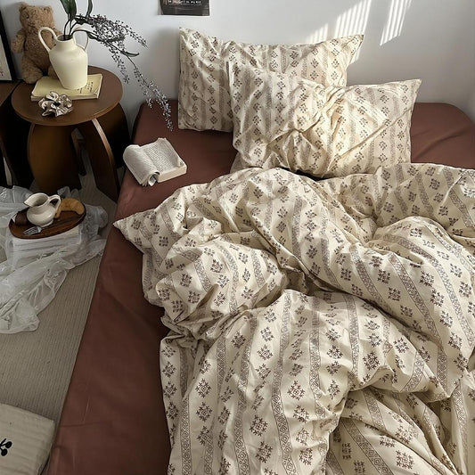 Beige Washed Cotton Bedding Set With Red Embroidered Heart