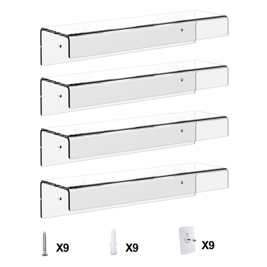 4-Pack: 15 inches Clear Acrylic Floating Shelves with 2 Mounting Ways