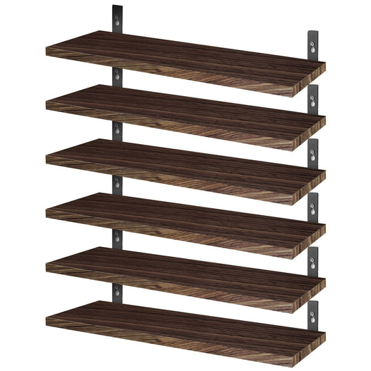 6-Piece Set: Wall Mounted Shelve Wood Storage Metal Bracket Display