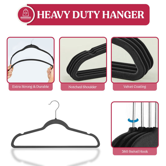 Lux Decor Collection Velvet Hangers Non-Slip Cloth Storage Organizer Space Saving Closet Clothing Hanger Pack
