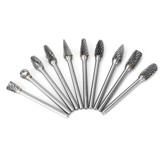 10-Piece: Double Cut Carbide Rotary Die Grinder Bit Set