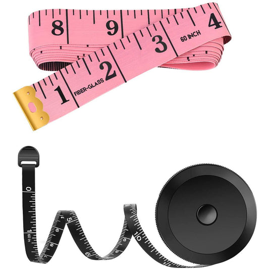 2-Pack: Soft Fashion Pink and Retractable Black Measuring Tape Set