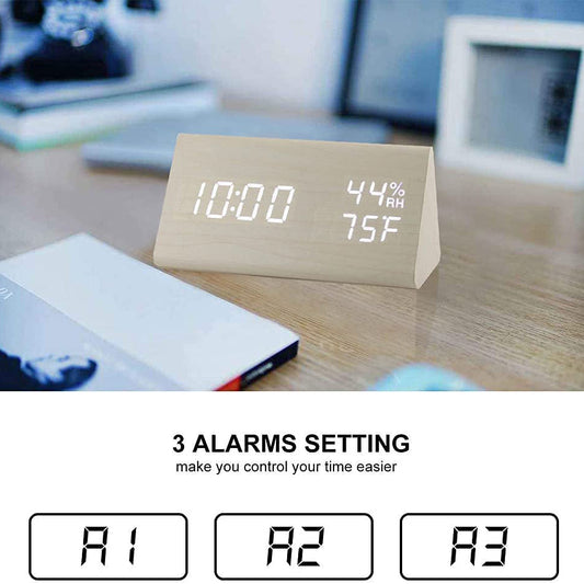 Digital Alarm Clock with Wooden Electronic LED Time Display