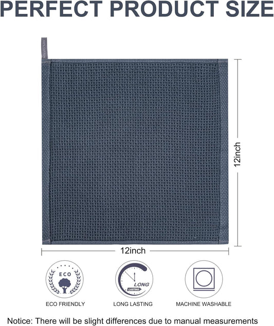Joybest Cotton Kitchen Dish Cloths, 8-Pack Waffle Weave Ultra Soft Absorbent Dish Towels Washcloths Quick Drying Dish Rags, 12X12 Inches, Dark Gray