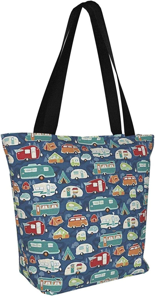 Antcreptson Campers Camping Trailers Canvas Tote Bag for Women Travel Work Shopping Grocery Top Handle Purses Large Totes Reusable Handbags Cotton Shoulder Bags for Women Travel Work Shopping Grocery