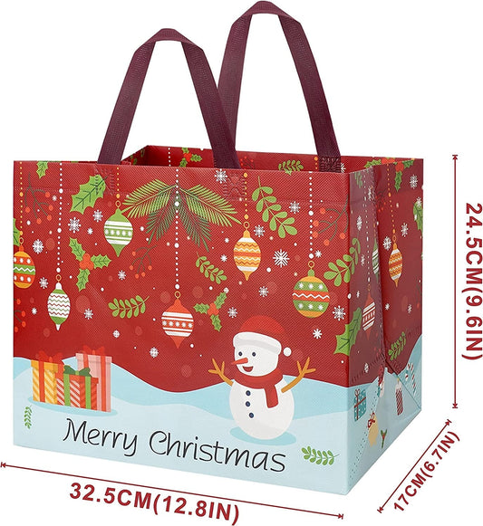 ANOTION Christmas Gift Bags, 12 Pack Large Christmas Goodie Bag Christmas Tote Bags with Handle, Reusable Xmas Bags Grocery Shopping Totes for Holiday Xmas 12.8" X 9.6" X 6.7"