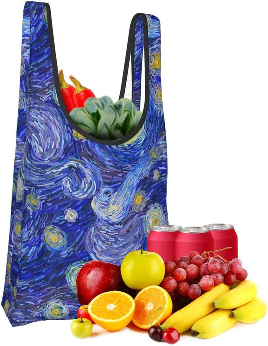 Starry Night Print Reuseable Grocery Bags Blue Sky Shopping Totes Art Foldable Waterproof Bag Storage Environmentally Fiendly (Starry Night)