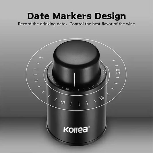 Wine Stoppers, Kollea Wine Bottle Stoppers, Vacuum Wine Stoppers, Reusable Wine Preserver with Time Scale, Wine Vacuum Pump Wine Saver Wine Corks, Best Gift for Wine Lovers (2 Pack, Black)