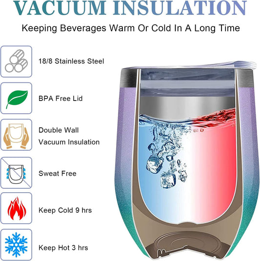 BOENFU 12Oz Wine Tumbler with Lid and Straw Double Wall Vacuum Insulated Tumbler for Cold & Hot Drinks Stainless Steel Tumbler Cups Travel Mug Wine Gift for Women & Men at Home,Office,Travel
