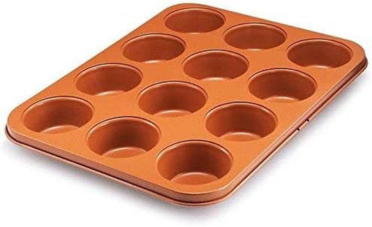 Gotham Steel Non Stick Ceramic Bakeware Set, 5 Piece No Warp & Dishwasher Safe Baking Set, Baking Pans Set with round & Square Baking Pan, Muffin Pan, Loaf Pan & Baking Sheet for Oven, 100% PFOA Free