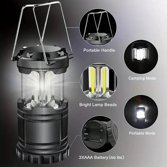 2-Pieces: Super Bright LED Camping Lantern - Portable and Collapsible Emergency Flashlight with Battery Power