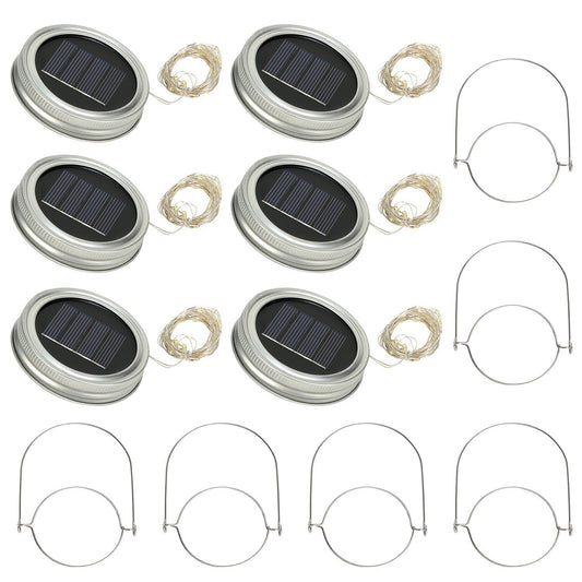6-Pieces: Solar Powered Mason Jar Lid Lights 20 LEDs
