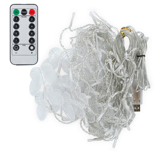 Butterfly Curtain String Lights USB Powered with 8 Modes 96 LED Remote Control