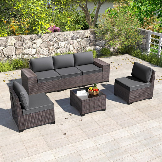 8-teiliges Gartenmöbelset mit 55.000 BTU Propangas-Feuerstelle und Tisch, Gartensofa-Konversationsset aus PE-Geflecht und Rattan, Anbaumöbel-Terrassenset mit Tischplatte aus gehärtetem Glas und Gasfeuerstelle (rot)