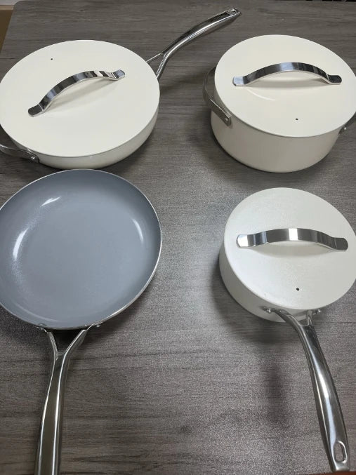 Bringen Sie mühelose Eleganz und Effizienz in Ihre Küche mit diesem 8-teiligen antihaftbeschichteten Kochgeschirrset , bei dem Leistung auf moderne Raffinesse trifft! 🍳✨