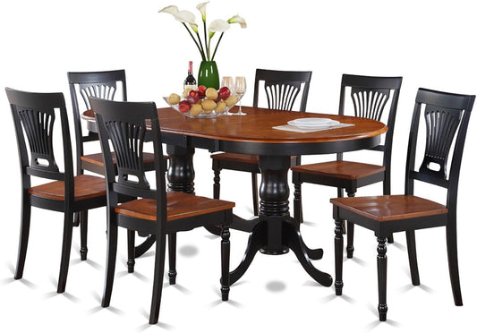 East West Furniture PLAI7-BLK-W 7-teiliges Esszimmertisch-Set, bestehend aus einem ovalen Küchentisch mit Schmetterlingsblatt und 6 Esszimmerstühlen, 42 x 78 Zoll, Schwarz und Kirsche