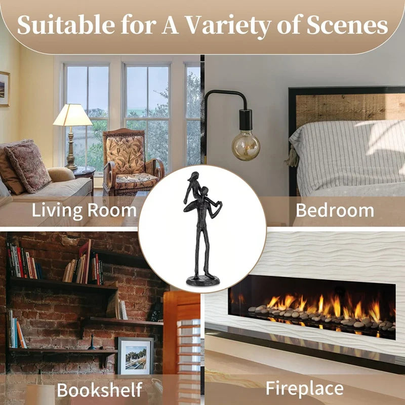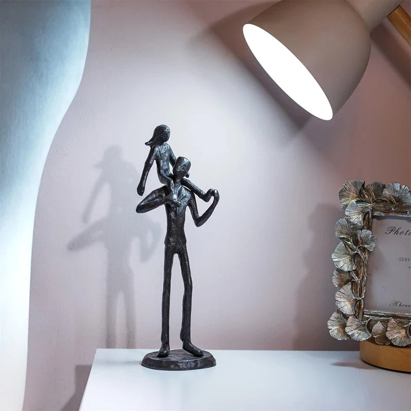 Diese handgefertigte Figur aus robustem Eisen mit rustikalem, künstlerischem Finish zeigt einen Vater, der seine Tochter sanft hochhebt oder mit ihr geht – ein Symbol für Liebe, Schutz und lebenslange Verbundenheit. Das minimalistische Design macht sie zu einem herzlichen und dennoch geschmackvollen Dekorationsstück, das sich für Schreibtische, Regale oder Nachttische eignet.