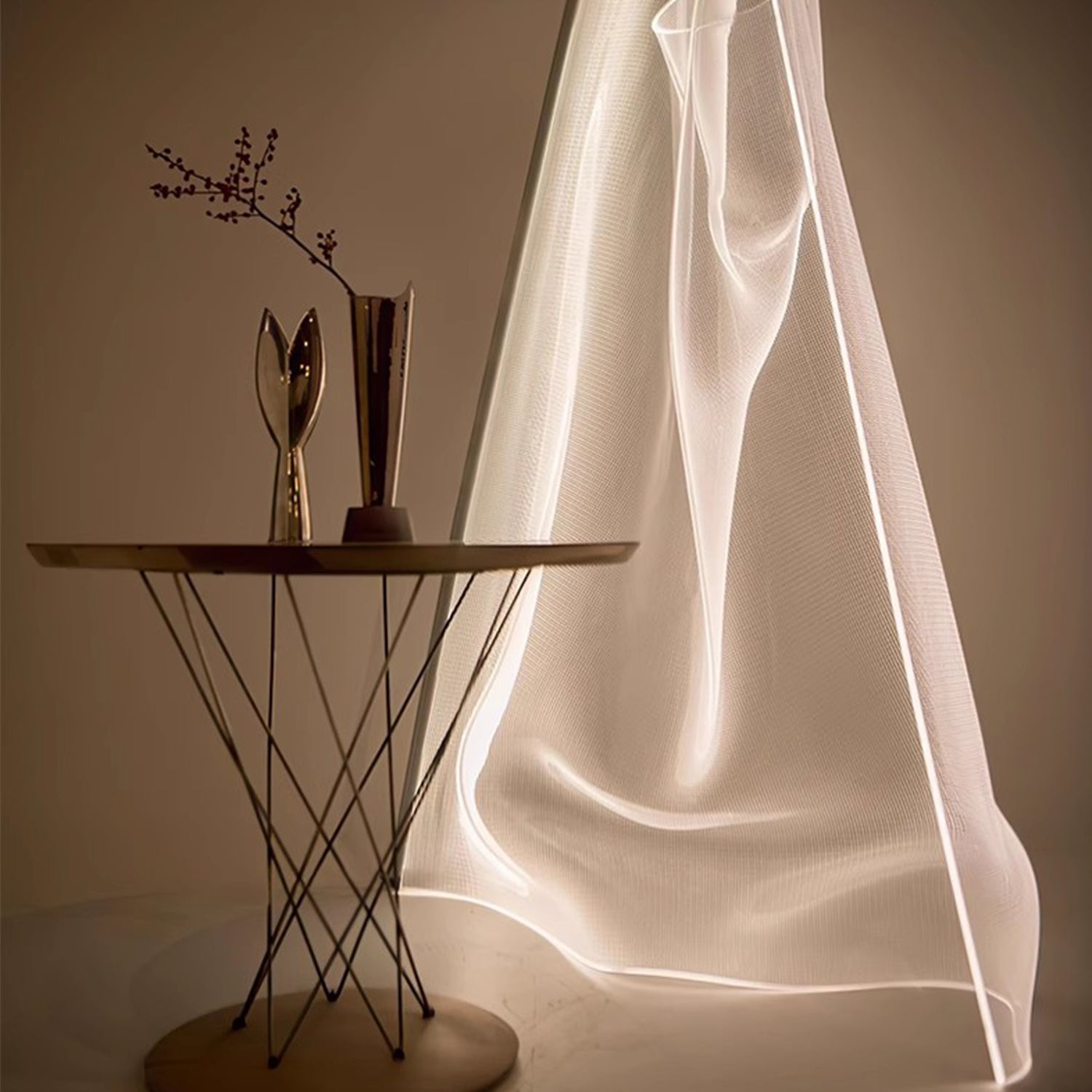 Unsere aus Acryl gefertigte Stehleuchte erinnert an einen anmutig im Wind schwebenden Stoff. Das faszinierende Lichtspiel erzeugt ein hypnotisierendes visuelles Erlebnis. Diese Stehleuchte dient nicht nur als Lichtquelle, sondern ist zugleich ein Kunstwerk, das jedem Wohnzimmer oder jeder Galerie eine kreative Note verleiht. Verwandeln Sie Ihren modernen, minimalistischen oder zeitgenössischen Raum mit diesem Kunstwerk in eine kreative Oase.