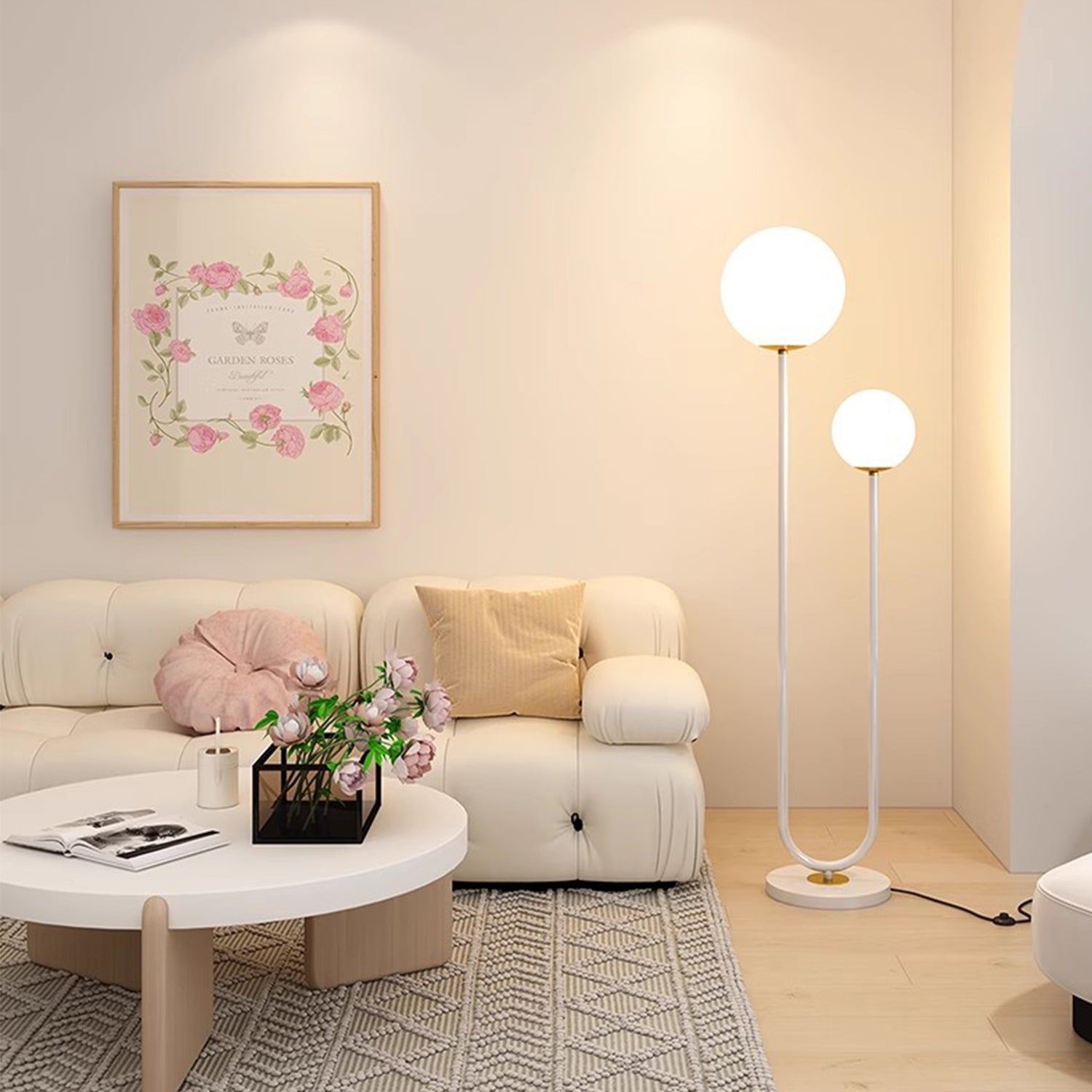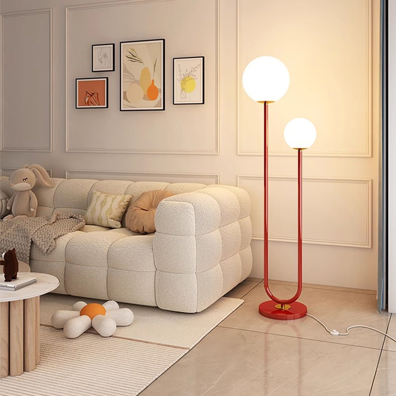Diese aus Eisen und ABS gefertigte Stehleuchte mit robustem Gestell verkörpert nordisches Design. Die runde Kugelform verleiht ihr eine verspielte Note und sorgt gleichzeitig für eine klare, minimalistische Ästhetik. Die NUVIA-Leuchte ist eine funktionale und stilvolle Beleuchtungslösung, die mit ihrem warmen Licht ein angenehmes Ambiente schafft.