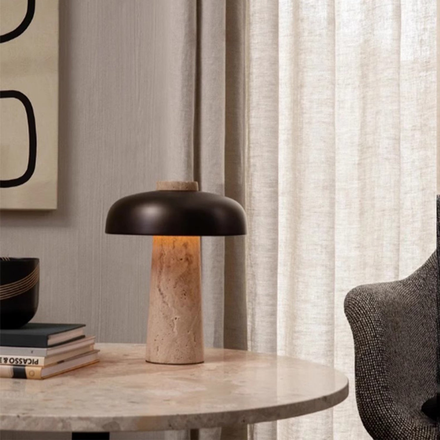Die Tischleuchte MOOR verleiht jedem im Wabi-Sabi- oder Hygge-Stil eingerichteten Wohnraum einen Hauch von Eleganz. Mit ihrem mattschwarzen Lampenschirm und dem Steinsockel setzt diese Leuchte stilvolle und strukturgebende Akzente in Ihrem modernen Wohnzimmer, Ihrer Lounge oder Ihrem Schlafzimmer.