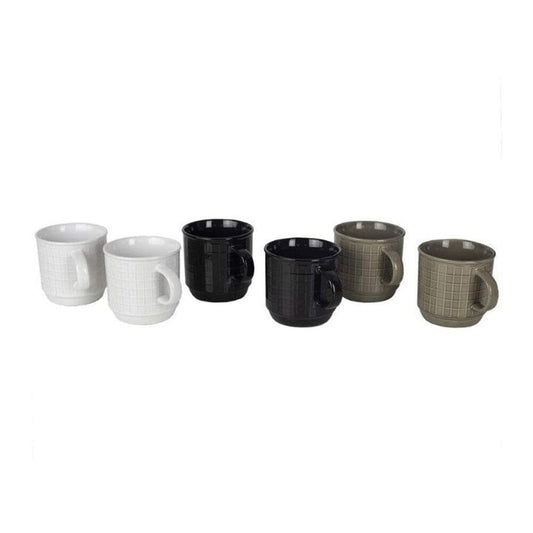 6-teiliges Set: Tassenset aus Steinzeug mit Metallgestell