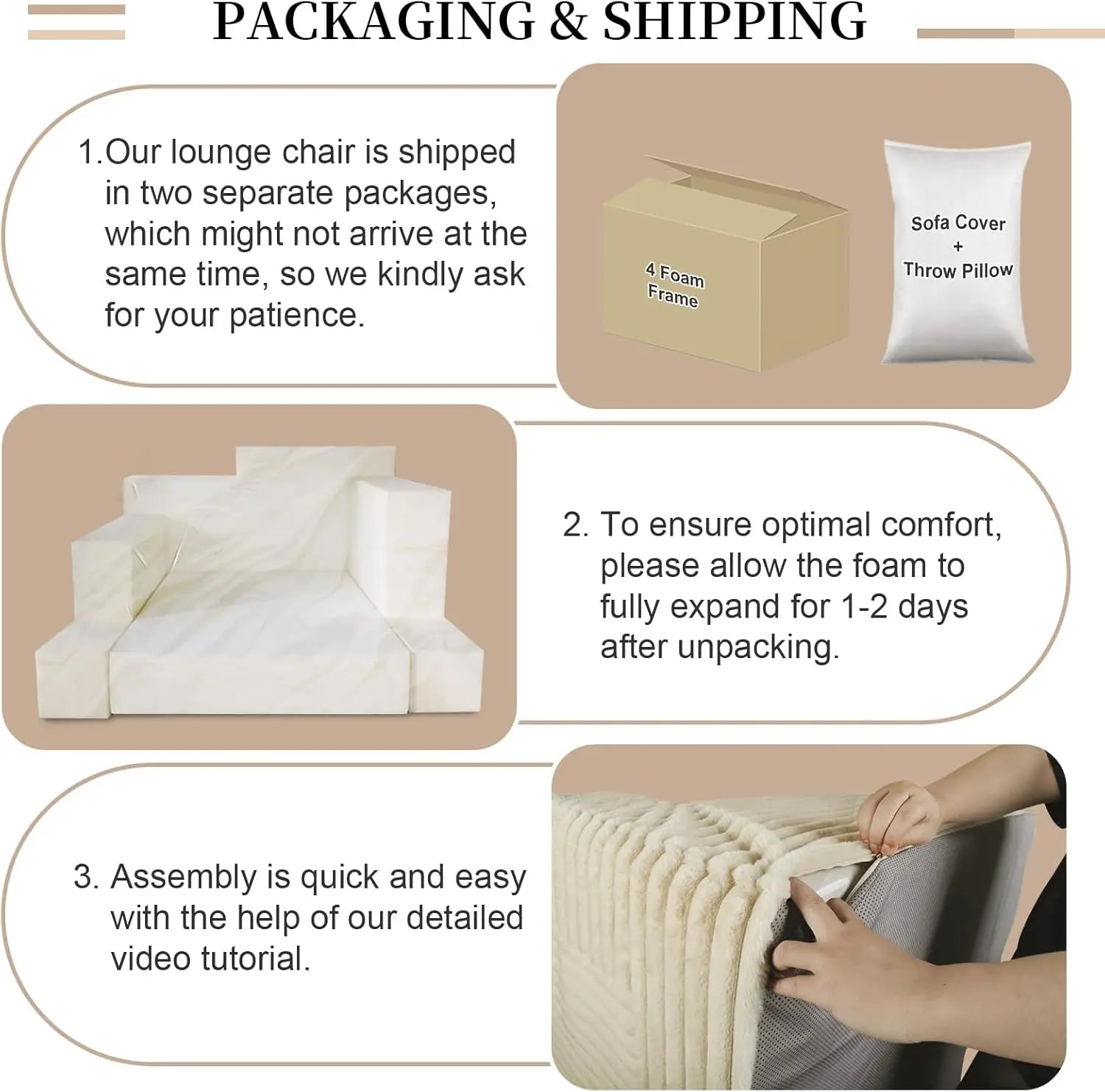 Der SnuggleSpot 48" Lounge Chair lädt zum Entspannen ein – eine übergroße, rechteckige Chaiselongue mit ultraweichem, gestreiftem Kunstfellbezug, die Ihrem Schlafzimmer oder Wohnzimmer modernen Charme verleiht. Mit großzügigen Abmessungen von 48,8" T x 48,8" B x 28,8" H, einer tiefen Sitzfläche von 40,8 Zoll und einer niedrigen Sitzhöhe von 13,6 Zoll bietet diese cremefarbene Schönheit ein ultragemütliches Lounge-Erlebnis, perfekt für zwei Personen. Hergestellt aus hochdichtem Schaumstoff und gefüllt mit plüschiger Polyesterfaser, vereint er sanftes Einsinken mit stabilem Halt und hält bis zu 850 Pfund, ohne durchzuhängen. Ob Sie es sich mit einem Buch gemütlich machen, Ihre Lieblingsserie streamen oder ruhige Momente mit Ihren Lieben teilen, sein vielseitiges Design passt sich mühelos Ihrem Lebensstil an. Das moderne Streifenmuster sorgt für eine dezente Struktur, während zwei passende Kissen den Look mit zusätzlichem Komfort und Stil abrunden. Der Aufbau ist schnell und einfach und mit knapp 33 kg ist es eine leichte und dennoch luxuriöse Ergänzung für jeden Raum – und macht das alltägliche Entspannen zu etwas ganz Besonderem.