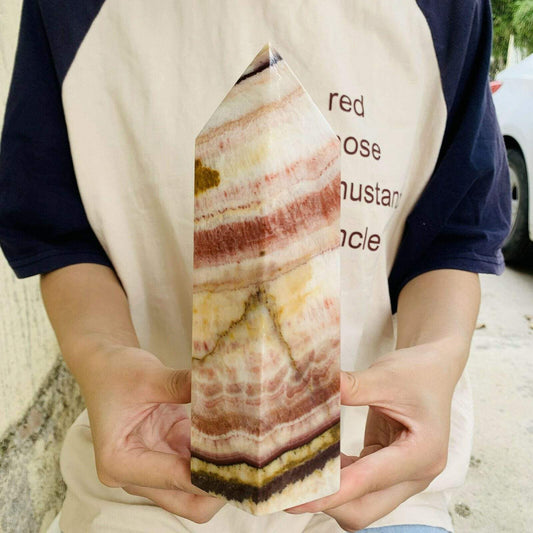 Natürlicher Calcit-Quarzkristall mit rotem Band