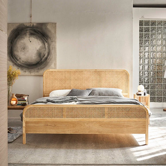 Bett-Rattan-Kopfteil aus natürlichem Teakholz