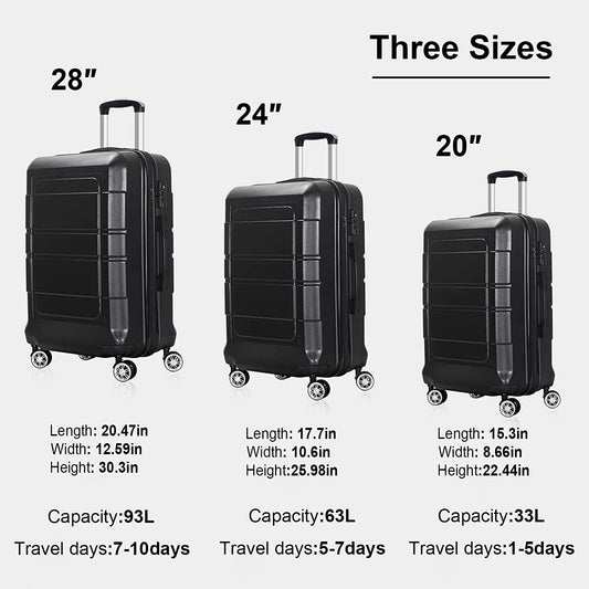 NIUTA 3-teiliges Gepäckset mit TSA-Schloss und 20"/24"/28" - Schwarz