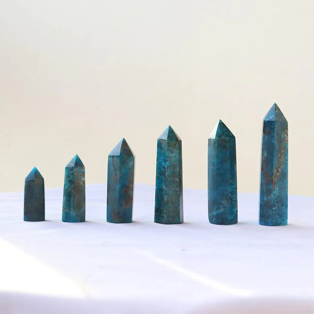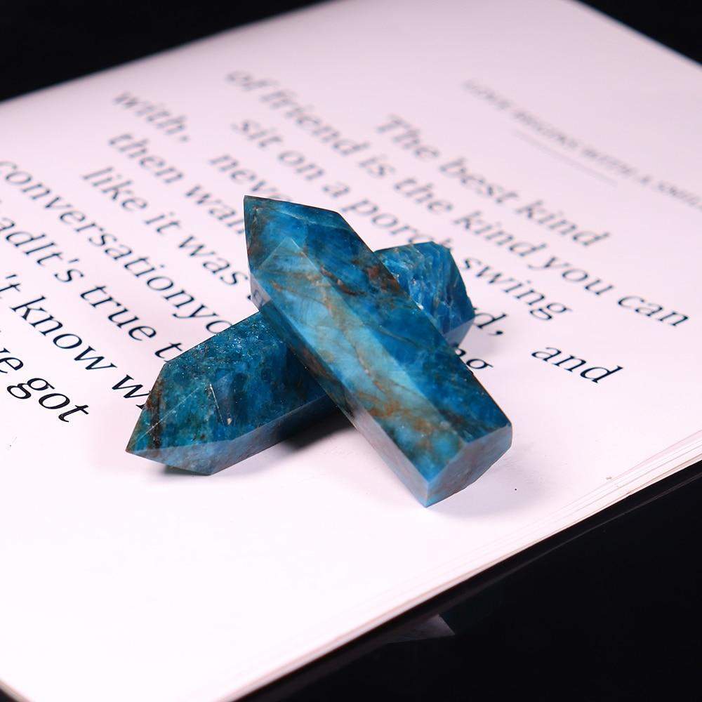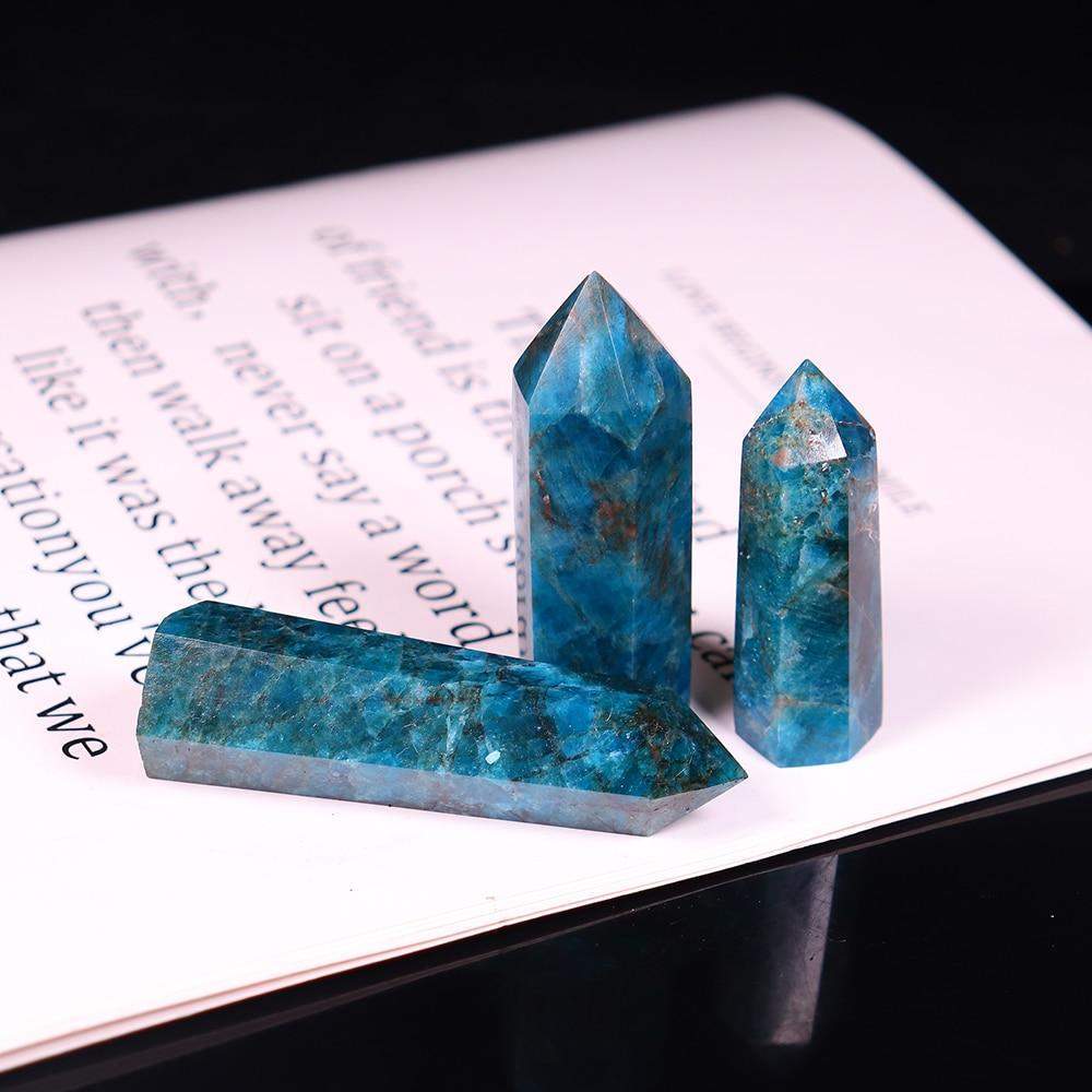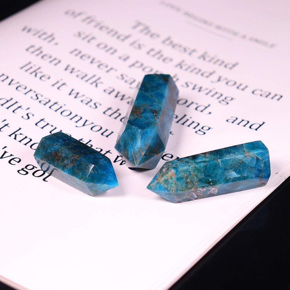 Apatit ist ein Stein der Manifestation. Er steht im Zusammenhang mit Dienst und humanitären Bestrebungen. Apatit ist auf die Zukunft abgestimmt, verbindet aber auch mit vergangenen Leben. Er stimuliert die Entwicklung unserer psychischen Gaben und spirituellen Einstimmung, vertieft die Meditation und unterstützt Kommunikation und Selbstdarstellung auf allen Ebenen. Er bringt den physischen, emotionalen, mentalen und spirituellen Körper sowie die Chakren ins Gleichgewicht, beseitigt Überaktivität und stimuliert Unteraktivität. Psychologisch gesehen steigert Apatit die Motivation. Er zieht Negativität über sich selbst und andere ab. Er ist hilfreich bei Hyperaktivität und Autismus bei Kindern. Apatit steigert Kreativität und Intellekt. Er beseitigt Verwirrung und Frustration, reduziert Reizbarkeit und erweckt das innere Selbst. Apatit erweitert Wissen und Wahrheit und lindert Kummer, Apathie und Wut. Körperlich gesehen unterstützt Apatit die Aufnahme von Kalzium, hilft Knorpel, Knochen und Zähnen, heilt Knochen und fördert die Bildung neuer Zellen. Er lindert Arthritis und Gelenkprobleme. Apatit kann erfolgreich dabei helfen, den Hunger zu unterdrücken und den Stoffwechsel anzukurbeln und so eine gesunde Ernährung zu fördern. Es heilt Drüsen, Meridiane und Organe und bekämpft Bluthochdruck.