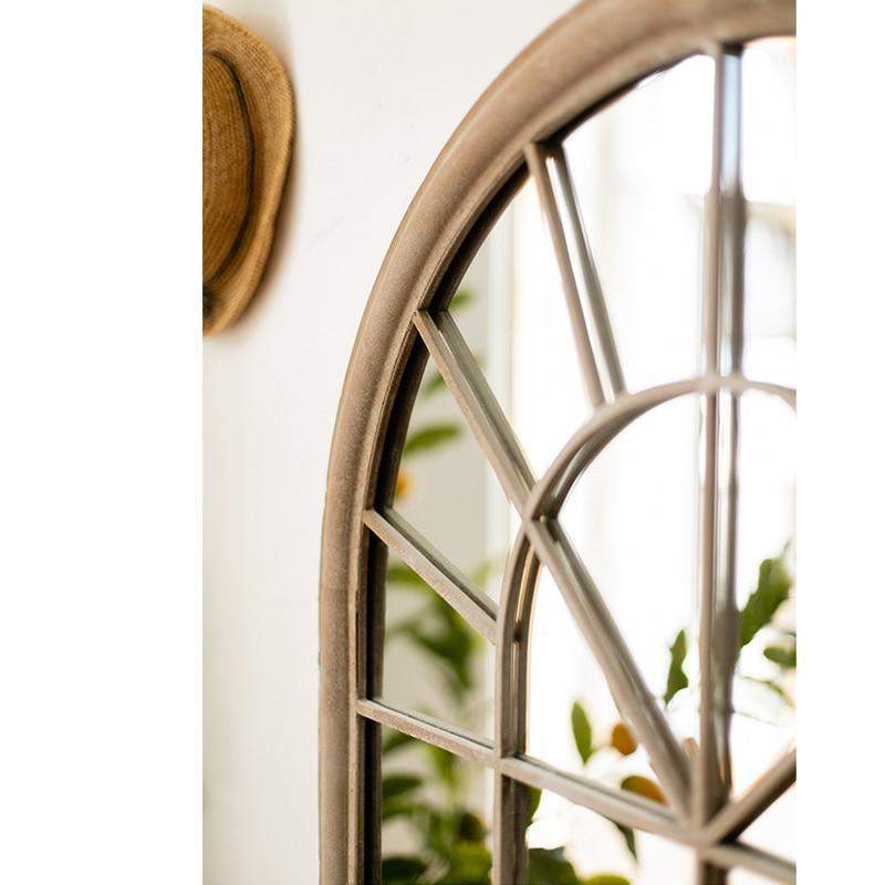 Der gewölbte Fensterspiegel im Antik-Look ist perfekt, um Ihre klassische Inneneinrichtung zu betonen. Er verfügt über einen Holzrahmen, der für Langlebigkeit sorgt und die reflektierende Oberfläche stützt. Dieser gewölbte Fensterspiegel dient als attraktiver Blickfang und steigert die optische Attraktivität jedes Raums. Die D-Ring-Haken auf der Rückseite ermöglichen ein einfaches und sicheres Aufhängen. Verwenden Sie ein weiches Tuch und einen handelsüblichen Glasreiniger, um die Oberfläche des Spiegels makellos und sauber zu halten.