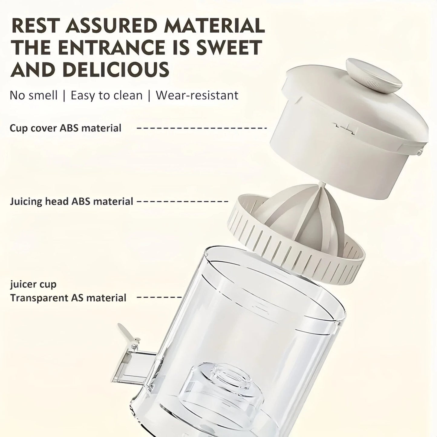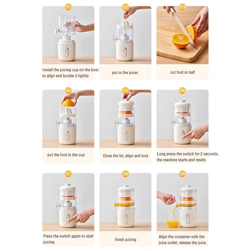 Der automatische elektrische Entsafter ist für das automatische Pressen mit maximaler Saftausbeute auf Knopfdruck konzipiert. Er erkennt die Schalendicke und eignet sich perfekt zum Entsaften von Obst und Gemüse. Dieser Entsafter eignet sich hervorragend zum Zubereiten gesunder Getränke, Cocktails, Rezepte, Desserts und Marinaden. Er verfügt außerdem über USB-C-Ladefunktion mit über 40-facher Saftausbeute nach einer vollständigen Aufladung. Er ist aus lebensmittelechten Materialien hergestellt, sicher und BPA-frei. Die abnehmbaren Teile lassen sich mit der mitgelieferten Spezialbürste leicht reinigen. Kompakt und tragbar, ideal zum Einkaufen, für Fitness, Picknicks, Camping und Reisen. Genießen Sie mit diesem lustigen und originellen Entsafter jederzeit und überall köstlichen Saft!