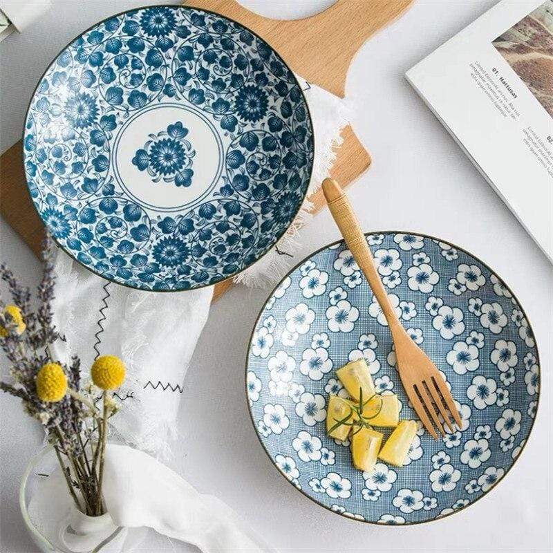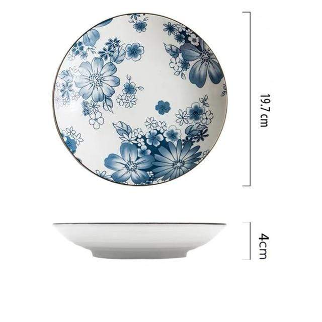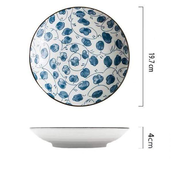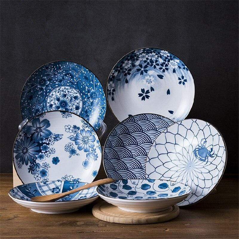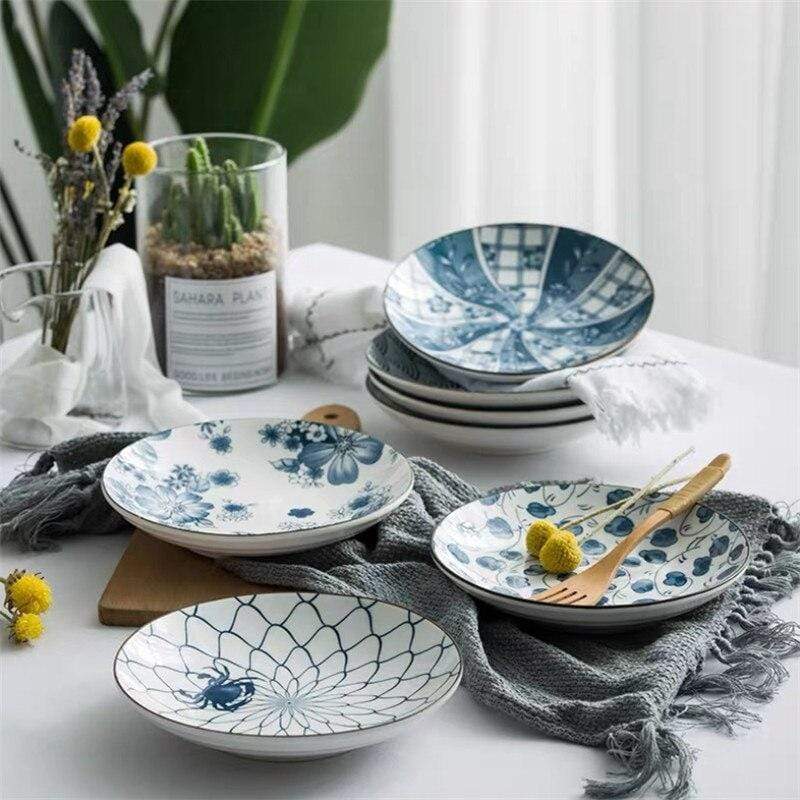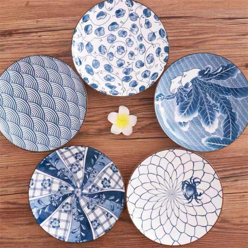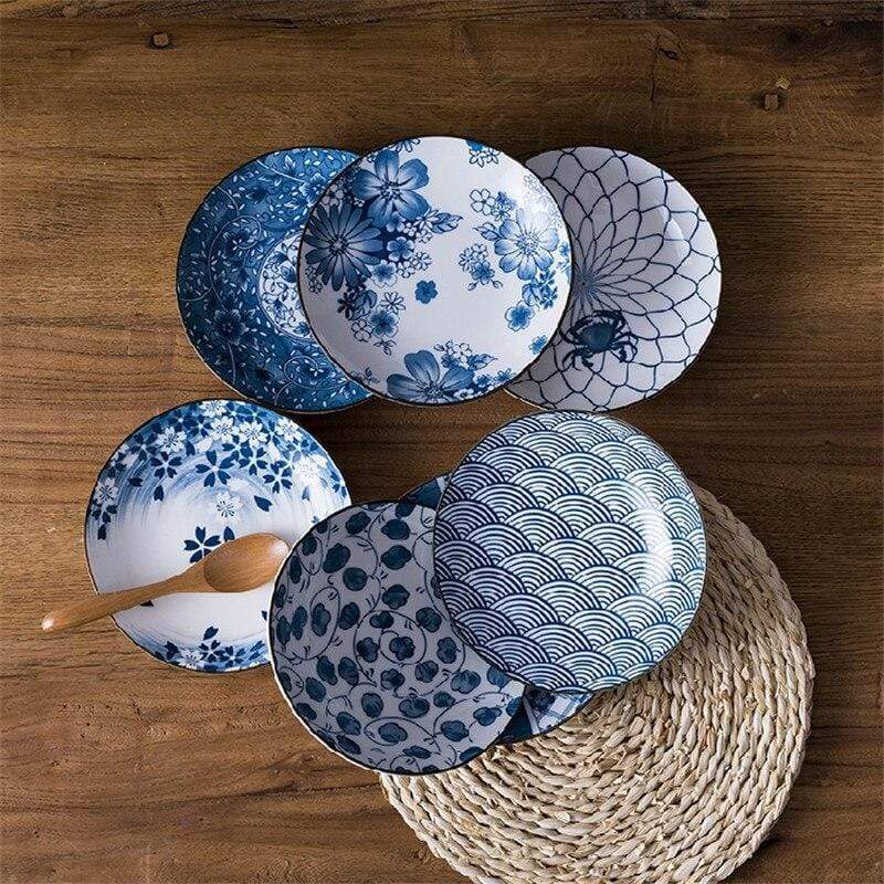 Auf jedem dieser runden Teller ist ein anderes Muster zu sehen. Sie ergeben eine wunderbare Mischung für Ihre Tischdekoration und können auch auf einem Regal ausgestellt werden, wenn sie nicht verwendet werden. Dies ist die perfekte Ergänzung zu einem blauen Küchendekor.
