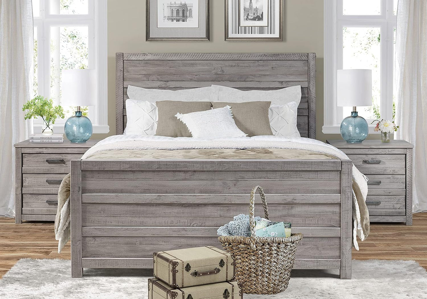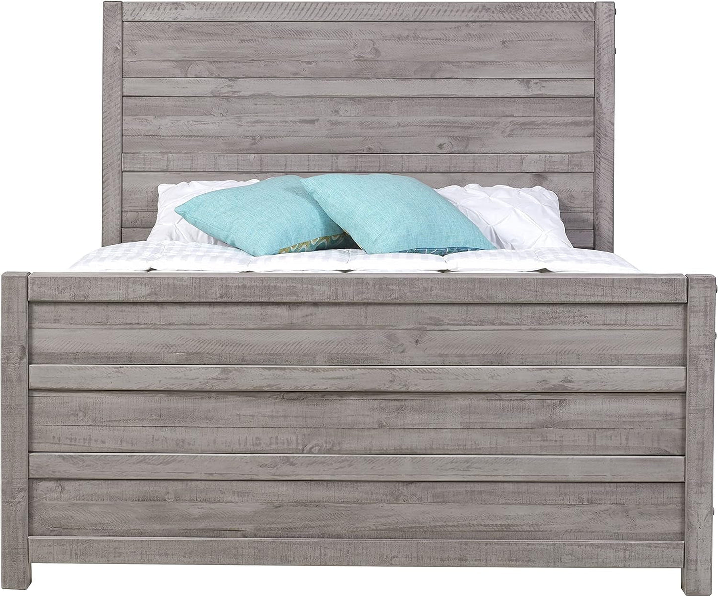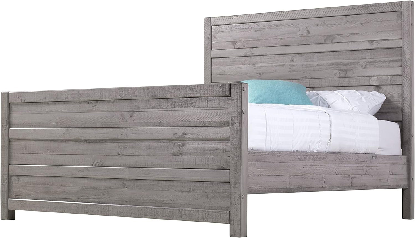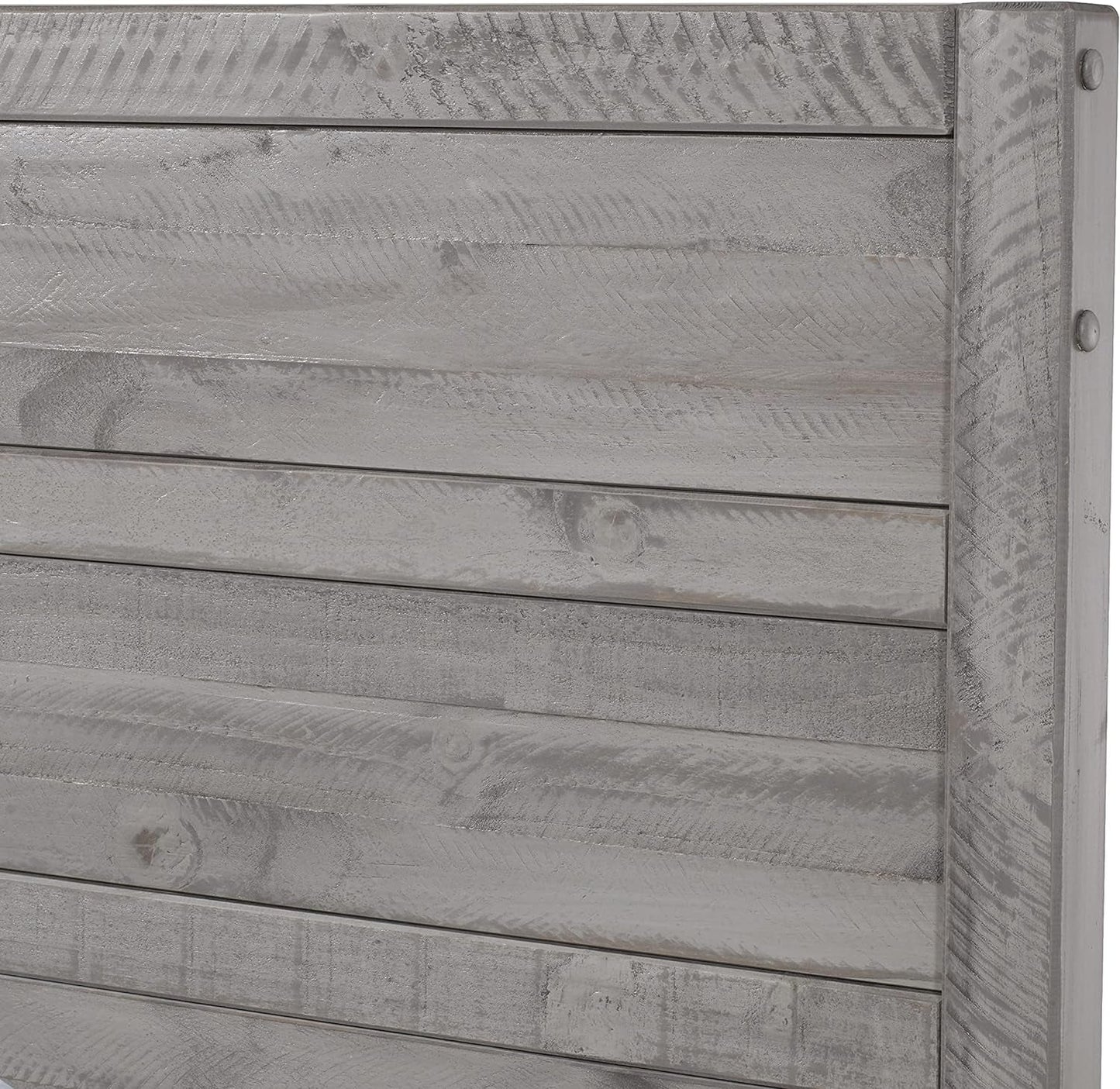 Die Carmel-Kollektion kombiniert zeitgenössisches Feingefühl mit rustikalen Materialien und verleiht Ihrem Zimmer einen besonderen Charme. Egal, ob Sie Ihr Schlafzimmer oder Gästezimmer einrichten, dieses rustikale Paneelbett definiert den Raum. Das Bett besteht aus massiven, behauenen Kiefernbrettern und weist sichtbare Löcher und natürliche Äste auf. Dadurch wird die organische Natur des Holzes hervorgehoben, aus dem es gefertigt ist. Die natürliche Holzmaserung und die starken Sägespuren werden durch die mehrstufige, antikgraue Schutzglasur des Betts noch weiter hervorgehoben. Die extra breiten Bettgitter aus Massivholz sind mit dem Kopf- und Fußteil verschraubt und bieten zusätzlichen Halt. An den vier Lattenkreuzstützen des Betts sind verstellbare Mittelpfosten angebracht, die ein stabiles Stützsystem für den Boxspring und die Matratze bilden. Der faszinierende urbane, rustikale Stil macht die Carmel-Kollektion zur anspruchsvollen Wahl für Ihr Zuhause.