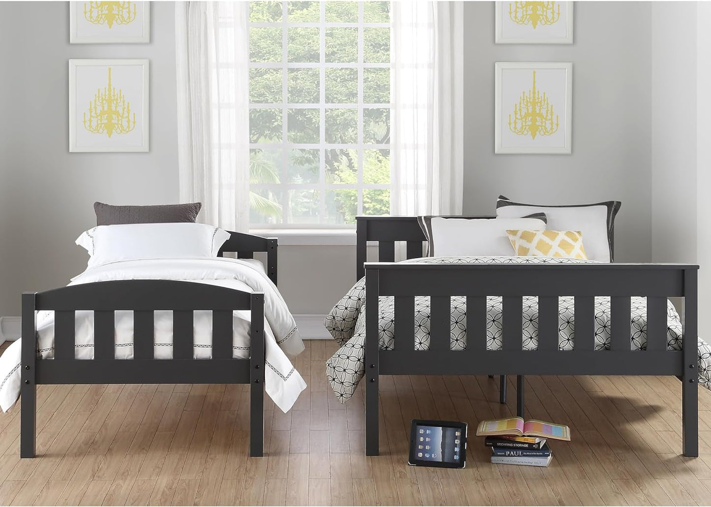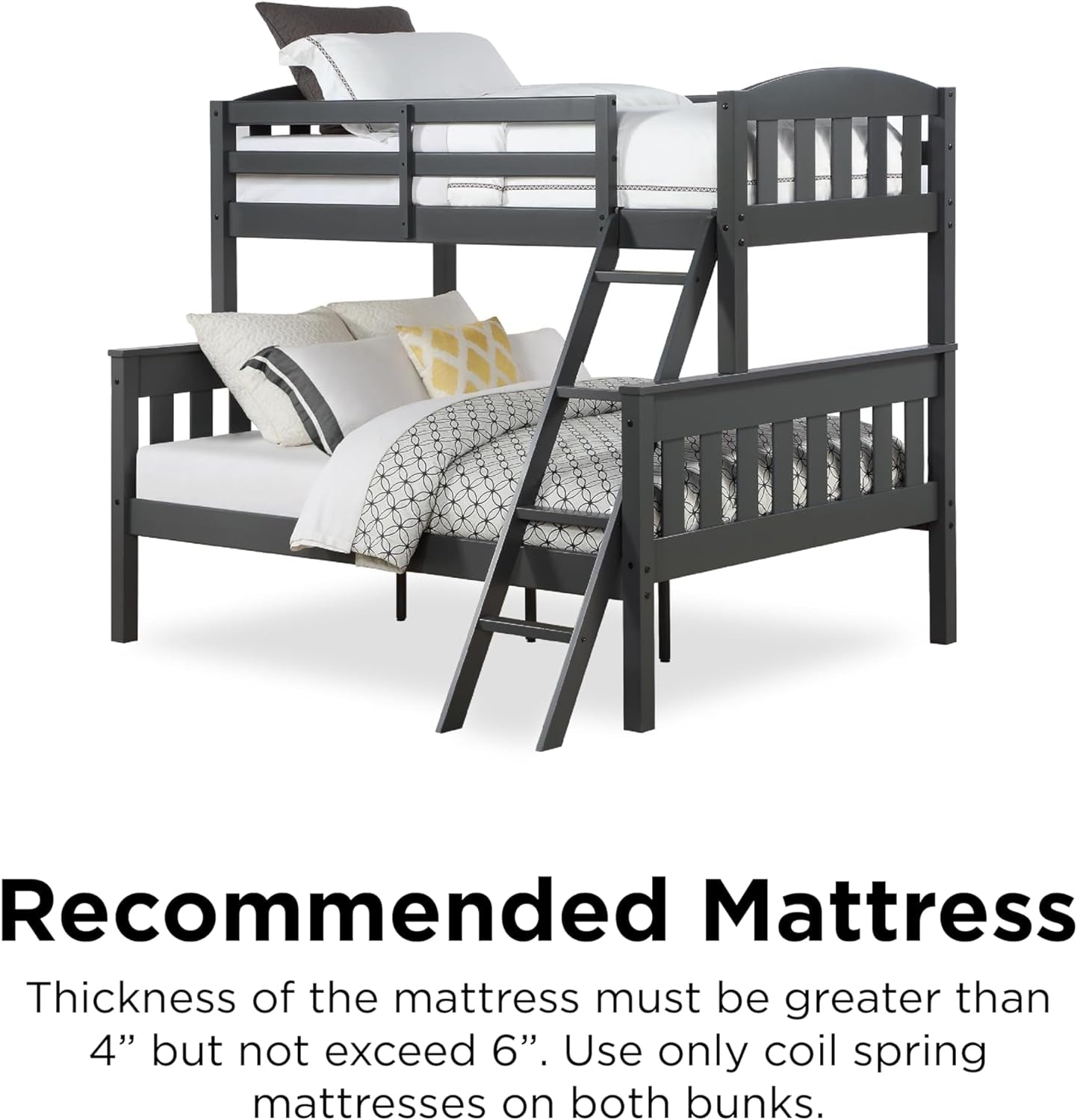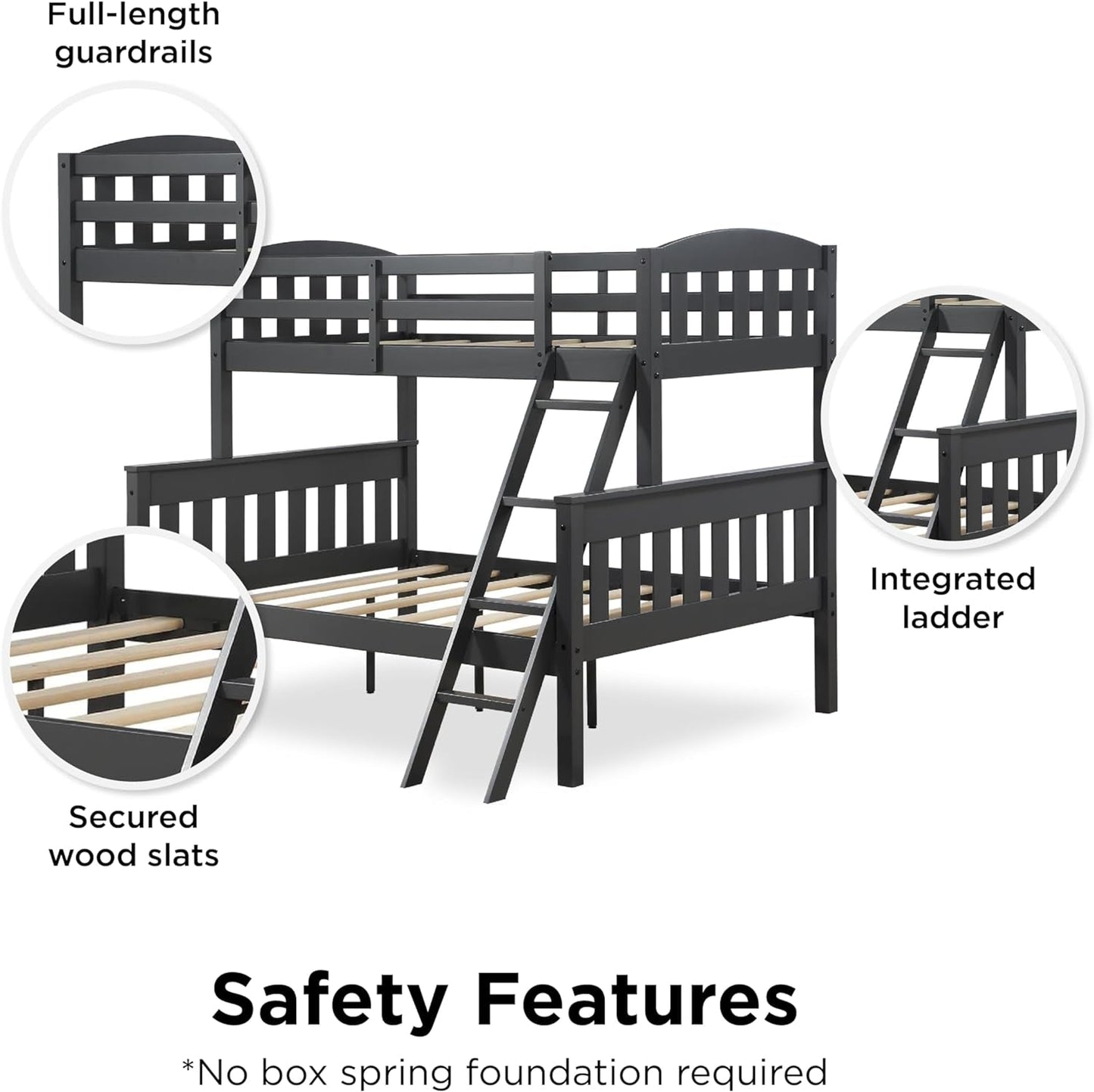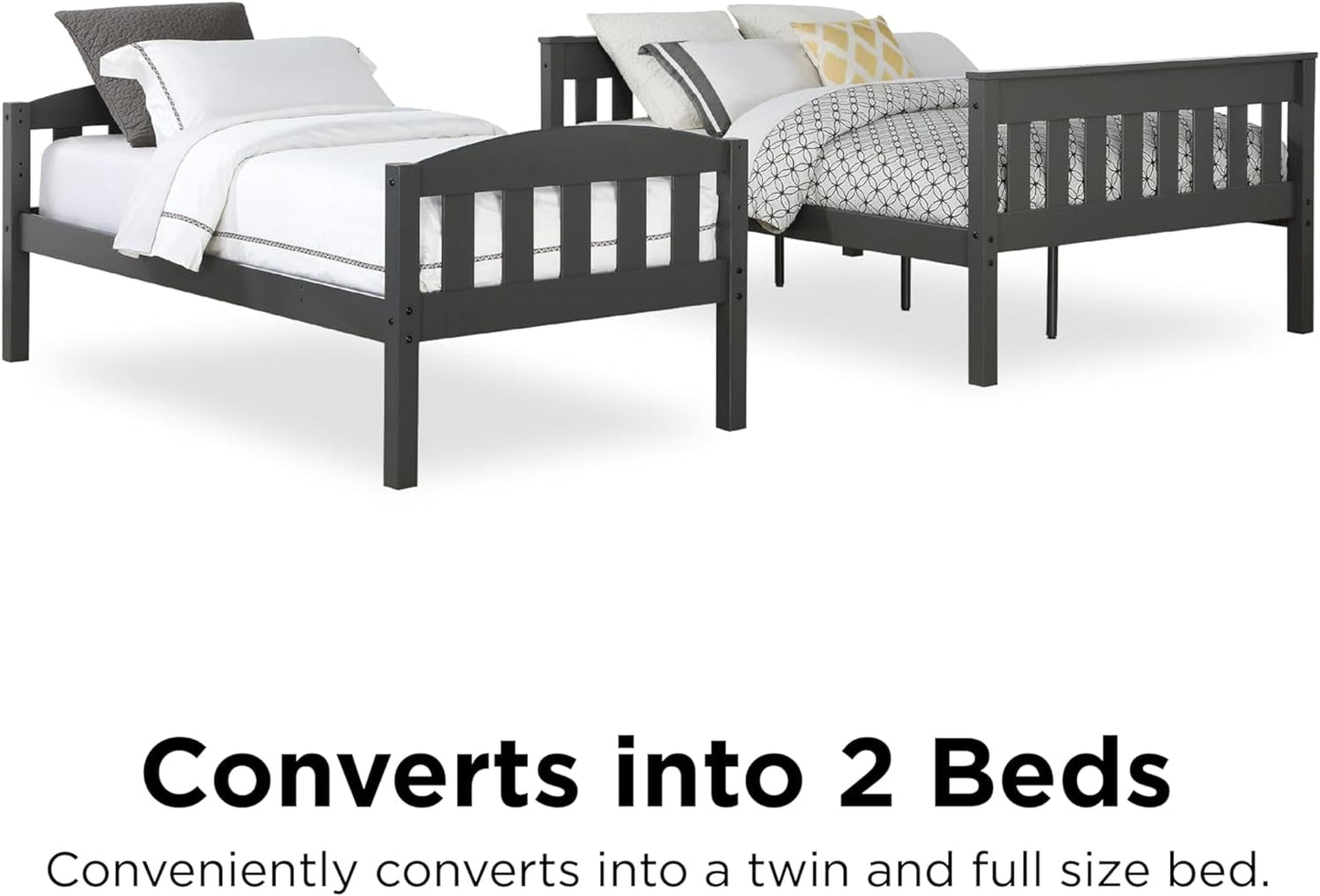 Verschönern Sie das Zimmer Ihrer Kinder mit dem DHP Airlie Twin over Full Etagenbett. Dieses Etagenbett im Twin over Full-Design bietet dank seiner kompakten Stellfläche viel Platz zum Spielen! Das traditionelle Design mit seiner robusten Holzkonstruktion umfasst Übergangsästhetik wie sanfte Rundungen am oberen Bett, ein klassisches vertikales Lattendesign an Kopf- und Fußteilen und eine schiefergraue Oberfläche. Das Airlie ist sowohl auf Funktionalität als auch auf Sicherheit ausgelegt und ist mit einer sicheren vierstufigen Leiter und zwei Schutzgeländern am oberen Bett für zusätzliche Sicherheit beim Schlafen ausgestattet. Dieses Etagenbett ist wirklich ein idealer Platzsparer und zeigt seine Vielseitigkeit, indem es sich leicht in ein Einzelbett und ein Doppelbett trennen lässt. Schaffen Sie mit dem DHP Airlie Twin over Full Etagenbett einen größeren und besseren Raum, in dem Ihre Kinder gerne abhängen werden.