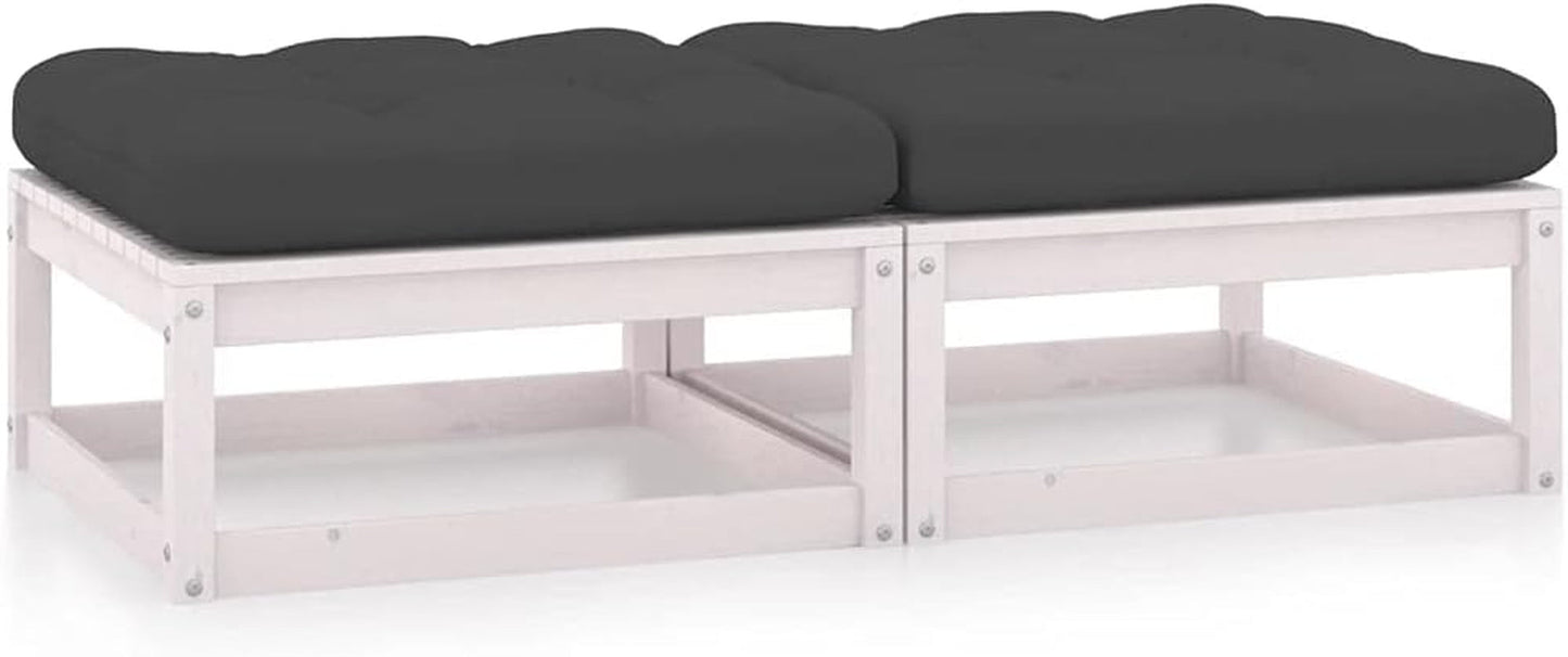 Garten-Fußhocker mit Kissen, 2-teiliges Gartensitzset aus massivem Kiefernholz, Terrassen-Sofagarnitur, 27,6 x 27,6 x 11,8 Zoll