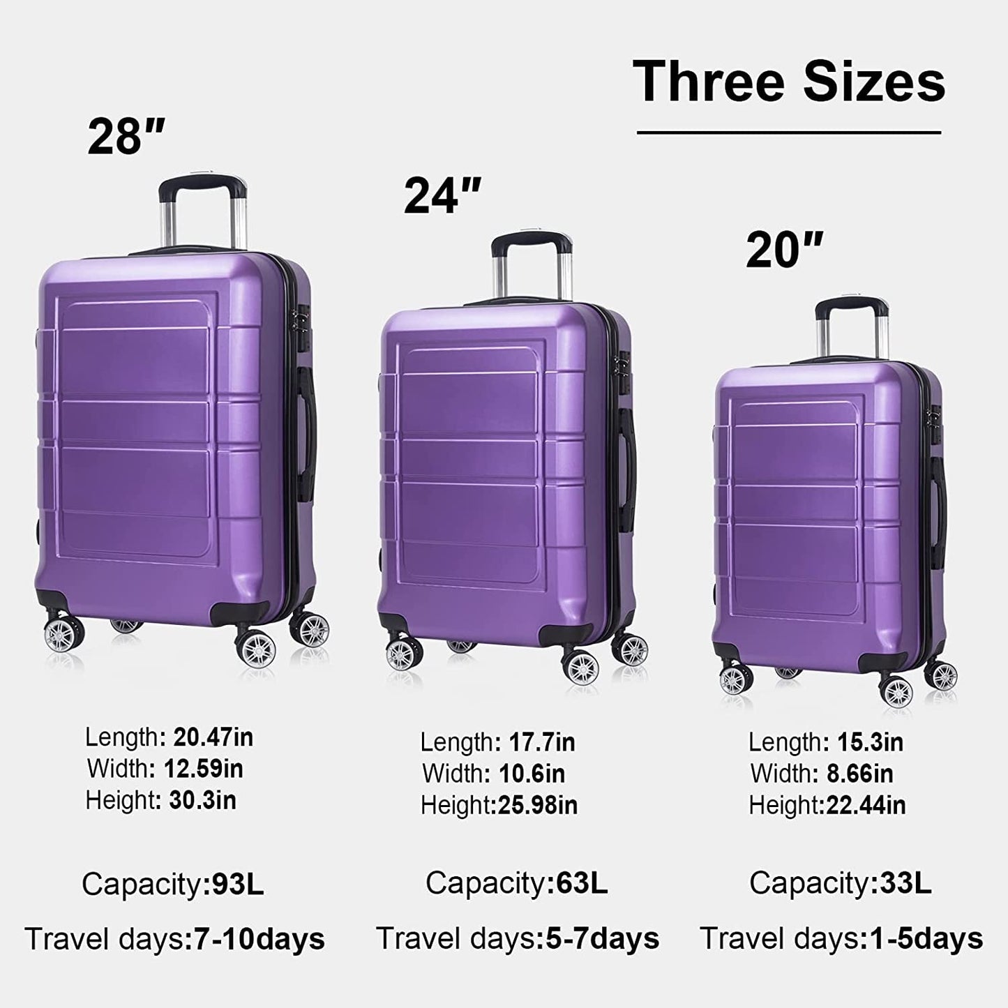 NIUTA 3-teiliges Gepäckset mit TSA-Schloss und 20"/24"/28" - Lila