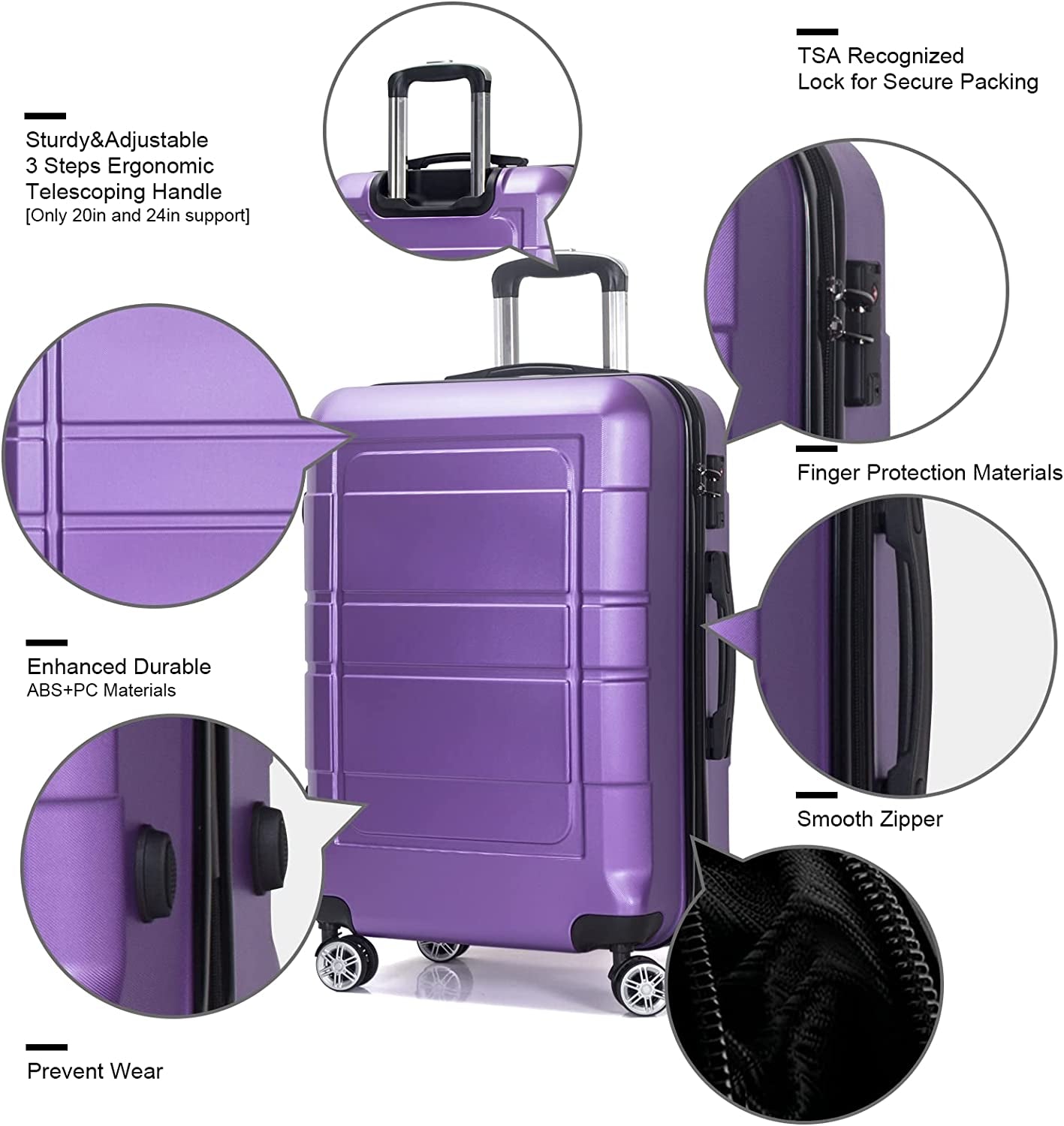 • Gepäcksets in Top-Qualität: Hergestellt aus brandneuen, extradicken PC+ABS-Materialien für Hartschalen, die das Gepäck haltbarer, leichter und stoßfester machen. Verfügt über eine strukturierte Oberfläche zum Schutz vor Kratzern, sodass die Koffer auch nach einer Reise schön bleiben. 20 Zoll ist am besten für Handgepäck geeignet, 24 Zoll und 28 Zoll lassen sich um 15 % erweitern und bieten so mehr Platz.