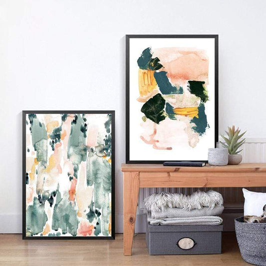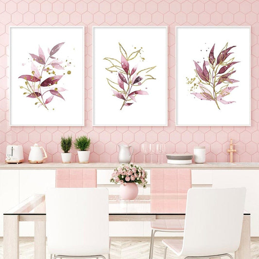 Watercolor Gold Purple Leaves Canvas Wall Art