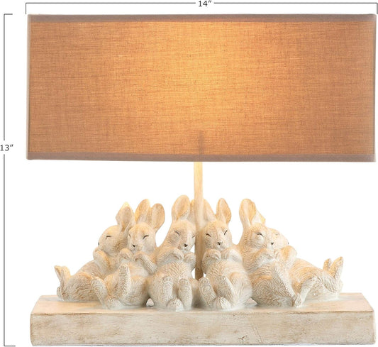 Whitewashed Rabbit Table Lamp with Sand Colored Linen Shade