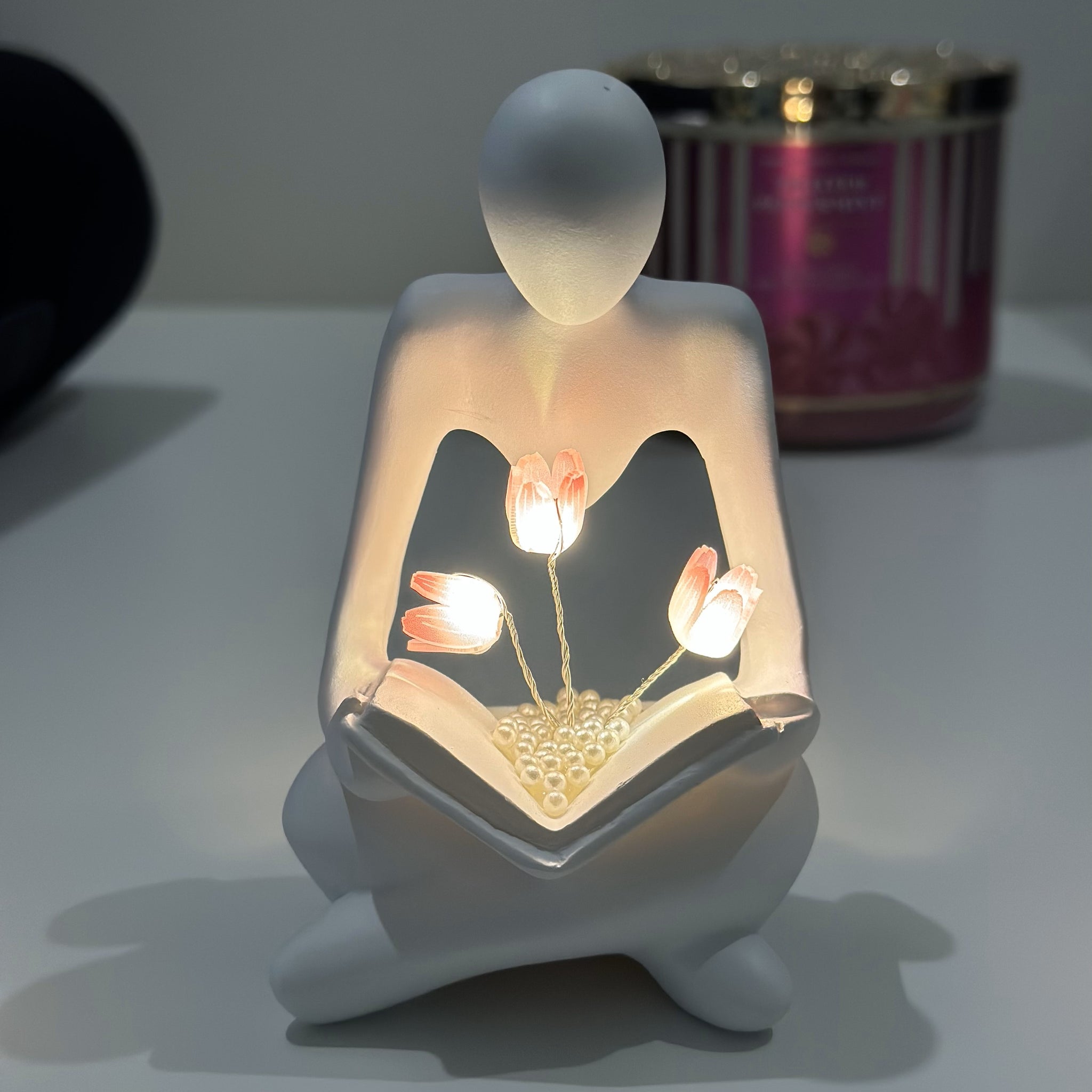 The warm, gentle glow creates a captivating and calming atmosphere, making it perfect for your living room, bedroom, or any space where you seek serenity. Each Illuminated Rose Reader Sculpture comes with 3 Coin Cell Battery each, ensuring long-lasting and energy-efficient operation, with a guaranteed lifespan for years to come.