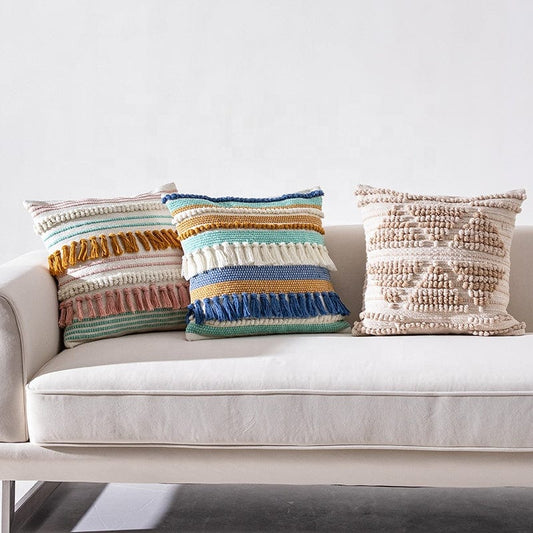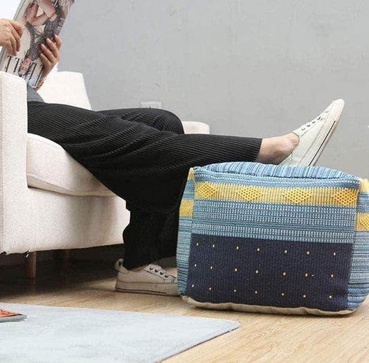 Square Unstuffed Pouf Cover, Ottoman, Foot Stool, Foot Rest, Cotton Linen Bean Bag Chair for Living Room, Bedrooms, Home Decor Blue