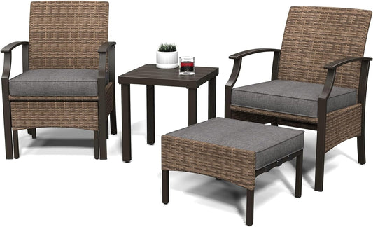Grand Patio 5-Piece Outdoor Furniture Sets Weather-Resistant Wicker Steel Outdoor Patio Chairs with Olefin Cushions Ottomans and Coffee Table for Balcony Backyard Garden Poolside- Gray