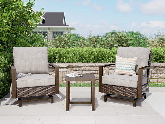 Grand Patio Outdoor 3-Piece Aluminum Conversation Furniture Sofa Set PE Wicker Stationary Rockers with Wood Grain Finish and Coffee Table, Removable Olefin Cushion Dark Brown