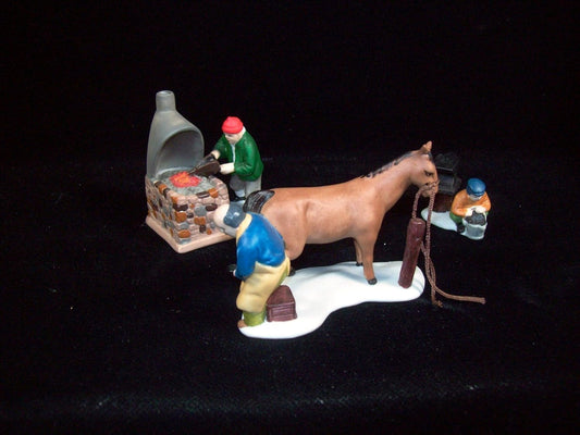 Department 56 Heritage Village Collection ; Dickens Village Blacksmith Set of 3 ; 1987 Retired ; Handpainted Porcelain Accessories #5934-0