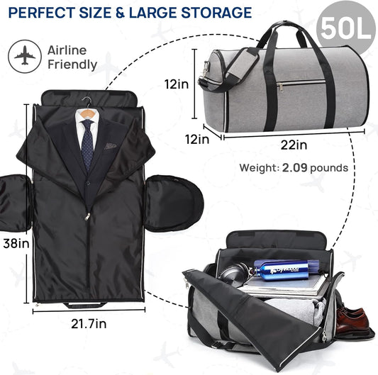 Garment Bags for Travel, Resogenix Foldable Carry on Garment Bag for Men, Waterproof Duffel Bag with Shoe Pouch - 2 in 1 Hanging Suitcase Suit Travel Bags, Perfect for Business Travel/Husband Gifts