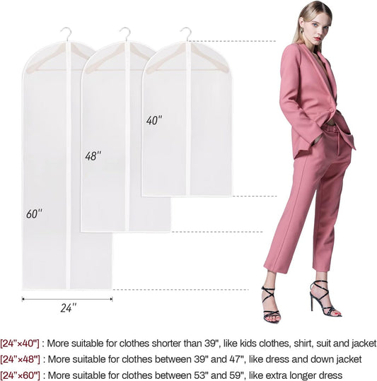 Garment Bags for Hanging Clothes – 40" 48" 60" Dust Proof Garment Covers, 10 Pack Suit Bags Dress Hanging Garment Bag for Closet Storage Protectors (24'' X 40''/48''/60'' / 10 Pack)