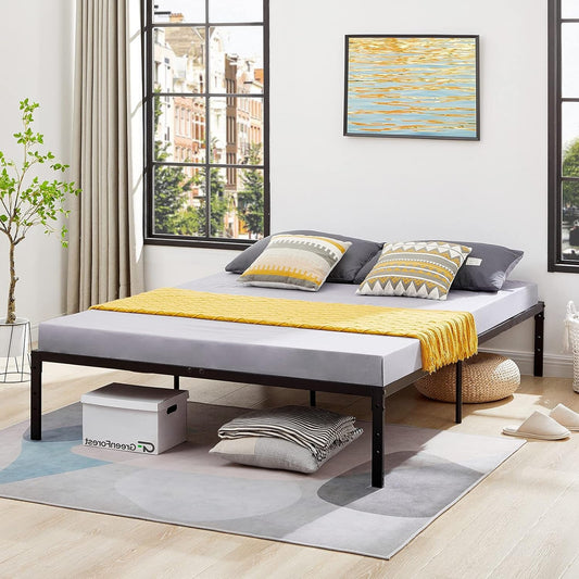 Greenforest Furniturer Bettrahmen, Queen-Size-Bett mit Metallplattform, 14-Zoll-Bett, kein Boxspring erforderlich, robustes, stabiles Bett mit Matratzenunterlage, schwarz