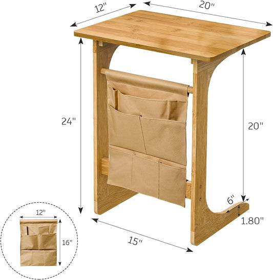 Ruichang C Mesa Sofá Mesa Auxiliar Que Se Desliza Debajo del Sofá para Espacios Pequeños Sala de Estar Computadora Portátil Café Merienda Bambú 20 X 12 X 24 Pulgadas TV Mesa con Bandeja