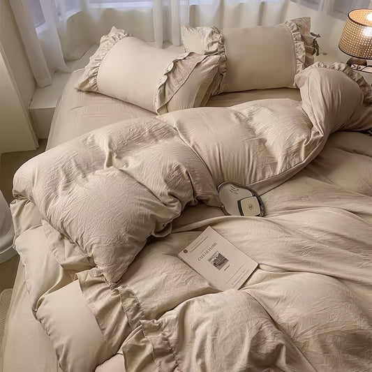 Pastellfarbenes Bettwäscheset im Leinen-Stil mit Rüschen